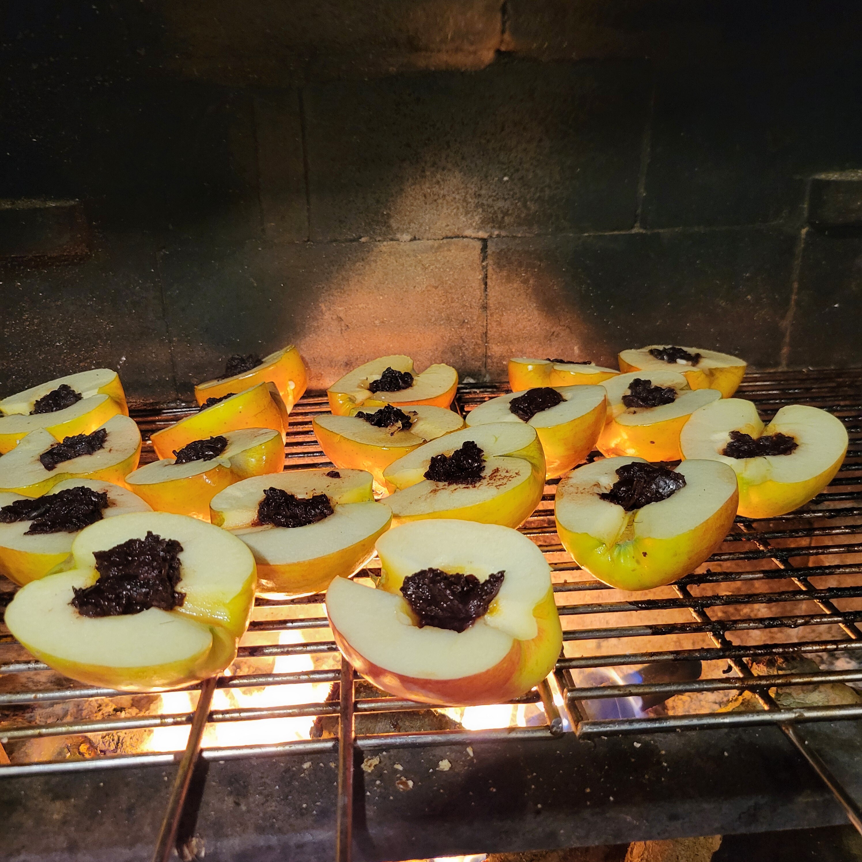 W sezonie letnim raz w tygodniu jemy kolację przy ognisku. Podajemy pieczone warzywa, dobre kiełbasy i boczek, jabłka nadziewane domowymi dżemami.